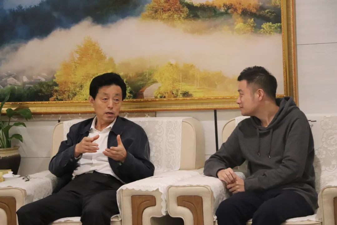 全國人大常委會委員、省人大常委會副主任謝廣祥(左)與謝裕大總經(jīng)理謝明之(右)親切交談