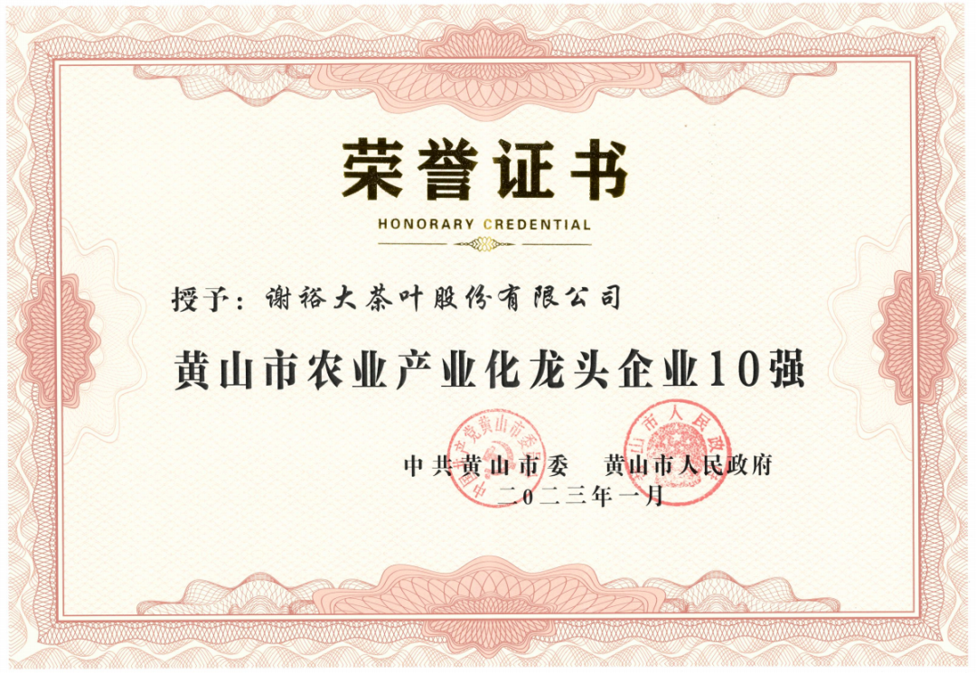 謝裕大對此次大會頒發(fā)的榮譽十分珍惜,未來也將持續(xù)秉持服務“三農(nóng)”的初心,繼續(xù)堅持高質量發(fā)展理念,依托黃山豐厚的生態(tài)、文化及旅游資源,發(fā)揮龍頭示范作用,加快推進戰(zhàn)略興農(nóng)、產(chǎn)業(yè)助農(nóng)、品牌強農(nóng),通過催生新業(yè)態(tài)、發(fā)展新模式、拓展新領域,持續(xù)推動“文化+旅游”發(fā)展新格局。以創(chuàng)新為動力,以質量求生存,以發(fā)展求壯大,不斷提升產(chǎn)品品質與服務水平,奮力推動全市經(jīng)濟社會高質量發(fā)展。