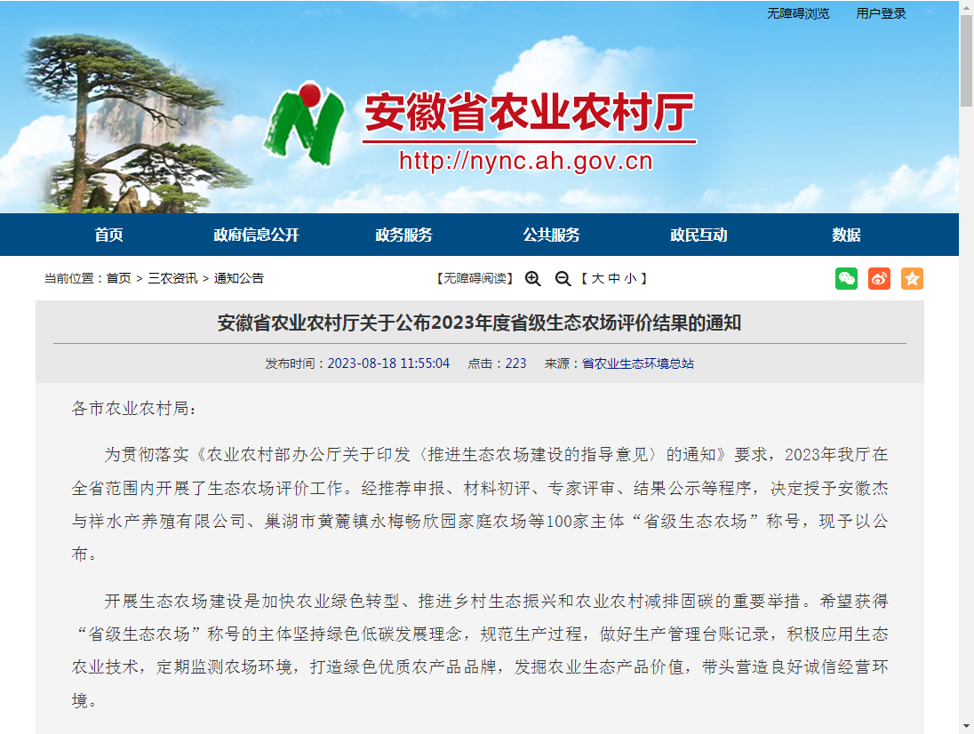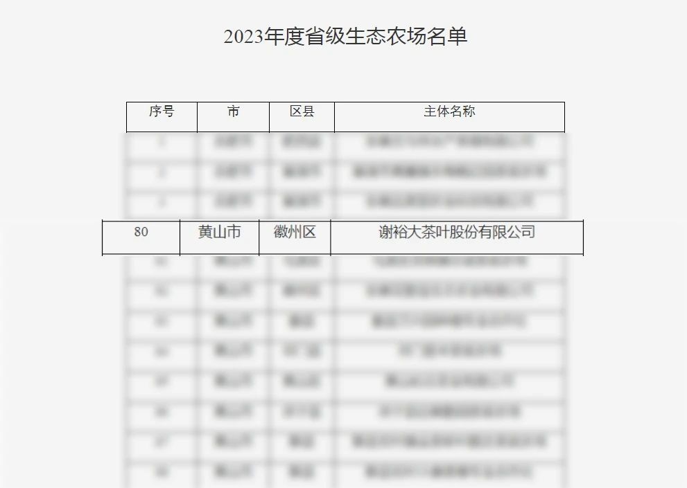 2023年8月18日,安徽省農(nóng)業(yè)農(nóng)村廳經(jīng)推薦申報(bào)、材料初評(píng)、專家評(píng)審、結(jié)果公示等程序后,正式公布2023年度省級(jí)生態(tài)農(nóng)場(chǎng)評(píng)價(jià)結(jié)果,謝裕大茶葉股份有限公司榮獲“省級(jí)生態(tài)農(nóng)場(chǎng)”稱號(hào)。