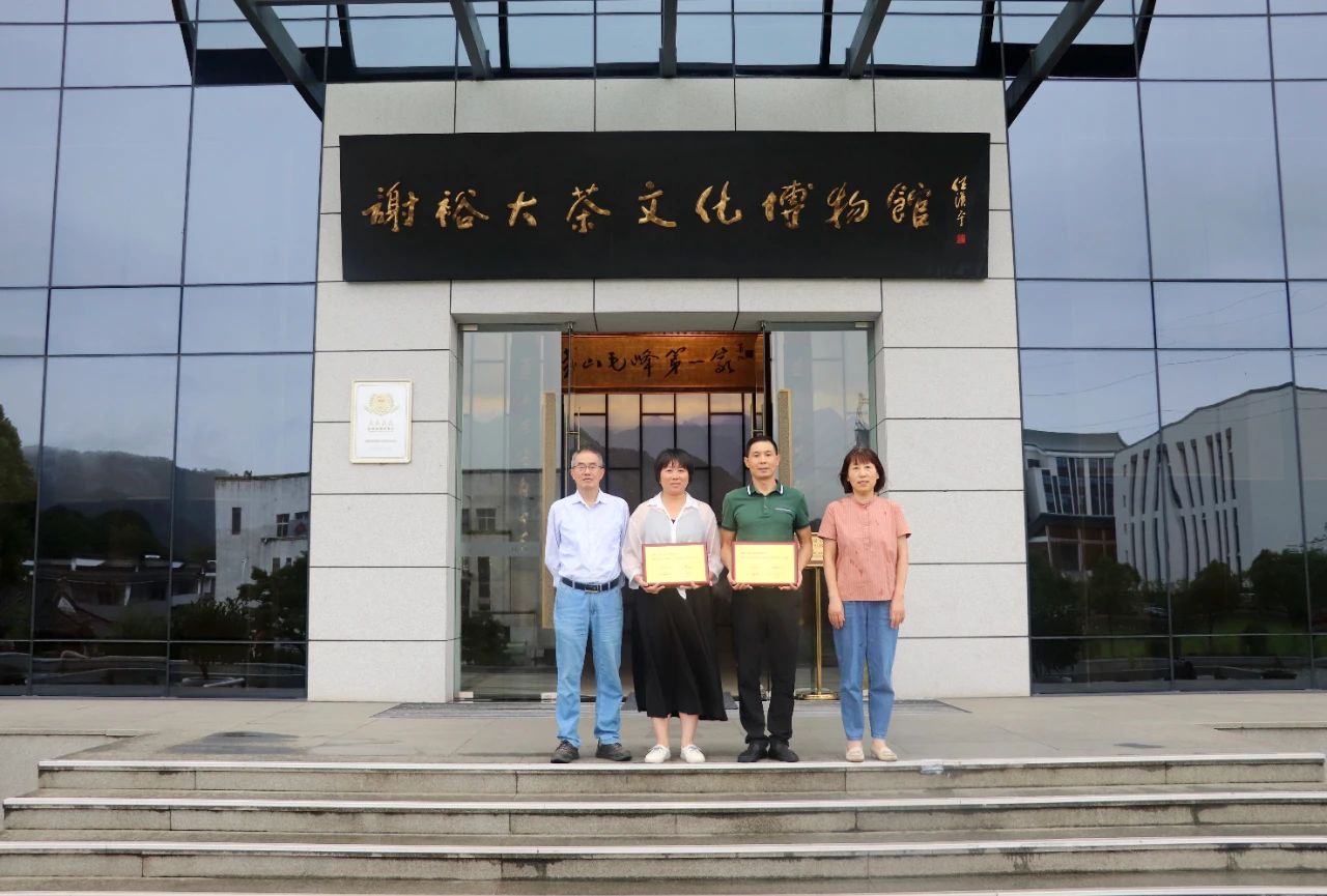 2023年8月30日,徽州區(qū)工商聯(lián)主席方秀莉、區(qū)青年商會(huì)辦公室負(fù)責(zé)人范秀明到訪(fǎng)謝裕大茶博園頒發(fā)營(yíng)業(yè)收入百?gòu)?qiáng)及納稅百?gòu)?qiáng)榮譽(yù),謝裕大行政中心總監(jiān)桂利權(quán)代表公司接受榮譽(yù)獎(jiǎng)牌。