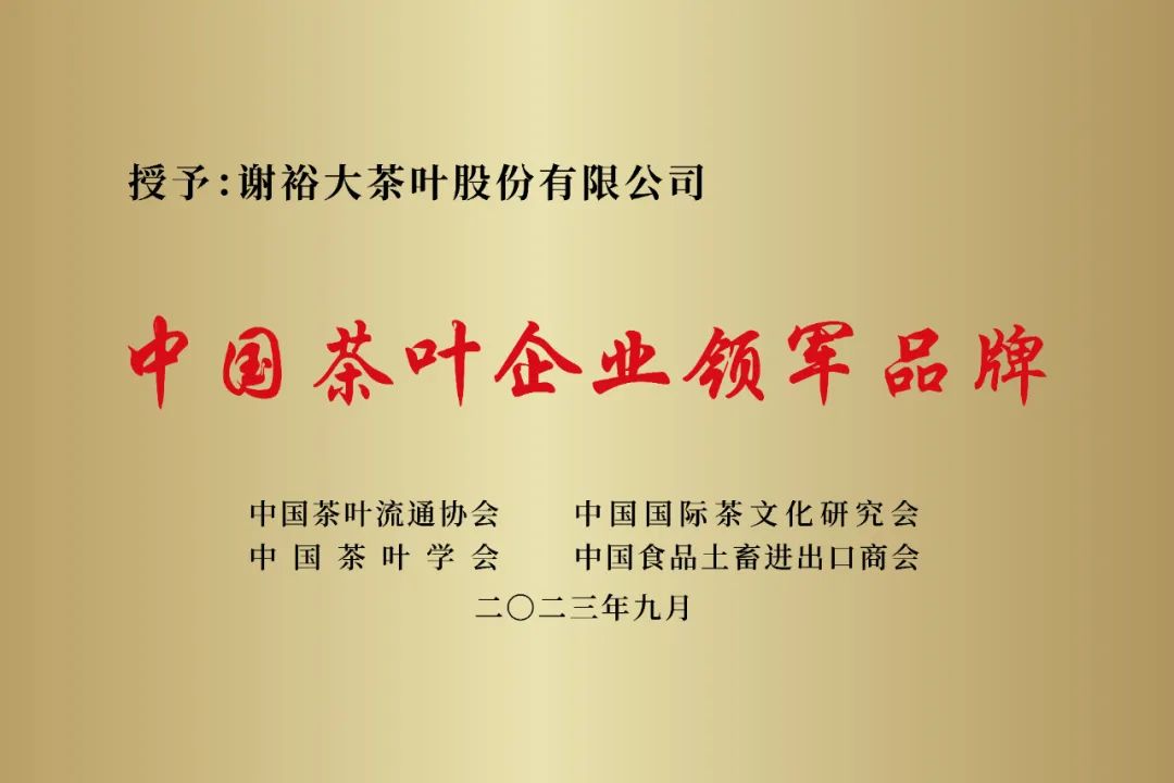 謝裕大被授予“中國茶葉企業(yè)領(lǐng)軍品牌”