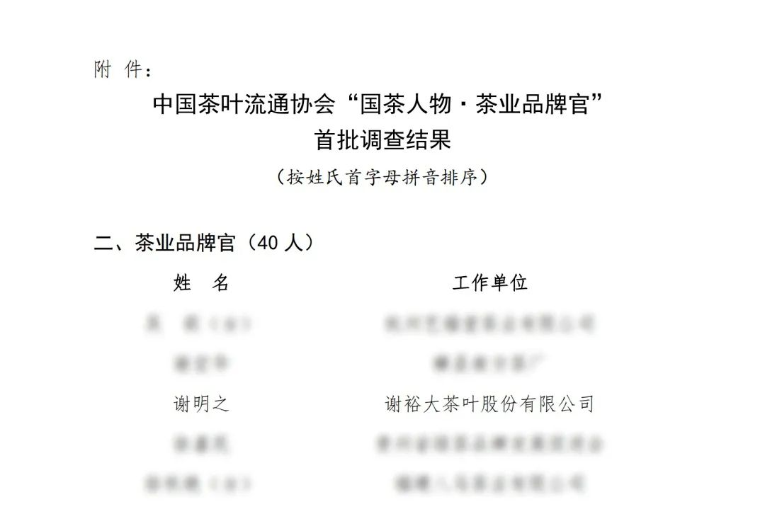 近日,中國(guó)茶業(yè)流通協(xié)會(huì)公布了“國(guó)茶人物·茶業(yè)品牌官”認(rèn)定名單,安徽省六位茶人上榜,其中謝裕大總經(jīng)理謝明之榮獲“國(guó)茶人物·茶業(yè)品牌官”稱號(hào)。據(jù)了解,此次開展“國(guó)茶人物·茶業(yè)品牌官”調(diào)查工作,旨在貫徹落實(shí)黨中央、國(guó)務(wù)院關(guān)于品牌建設(shè)工作的決策部署,推動(dòng)我國(guó)茶葉企業(yè)品牌管理人才隊(duì)伍建設(shè)。