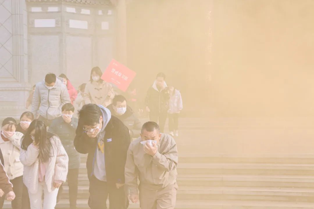 會后,在勞動研學大樓進行了消防疏散逃生演練,全體員工分為了通訊聯絡組、現場救援組、搶險救援組、滅火救援組、警戒保衛(wèi)組、醫(yī)療救援組、后勤保障組。培訓老師對每組人員進行了工作職責及逃生路線的詳細講解,使大家清晰了解本次演練流程及注意事項。演練開始,勞動研學大樓正門模擬煙霧繚繞的真實火場環(huán)境,所有參加人員嚴格執(zhí)行預案程序,模擬濕毛巾捂住口鼻,依次彎腰低頭從正確逃生通道離開。全體人員疏散有序,動作規(guī)范迅速,達到了理想的學習體驗效果。