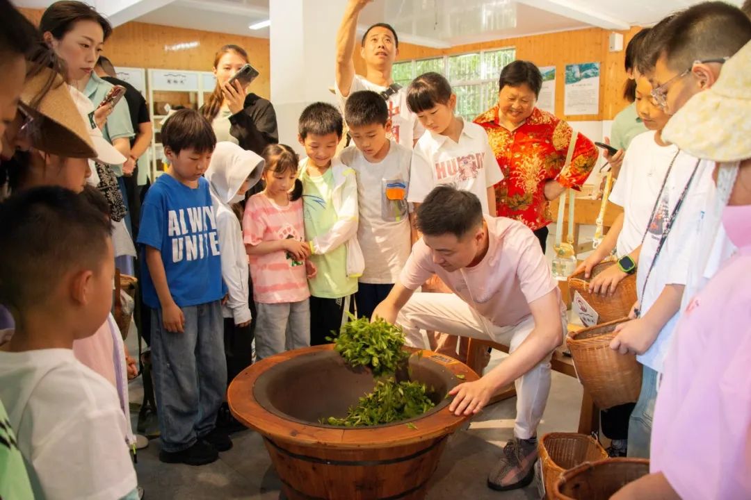 隨后在萬(wàn)物青翠的生態(tài)茶園中,與茶為伴獲得純真的快樂(lè)。親手采摘的茶葉,經(jīng)過(guò)爸爸媽媽的指導(dǎo)后親手炒制、揉捻、烘干,體驗(yàn)到謝裕大傳承百年非遺制茶技藝的獨(dú)特魅力。