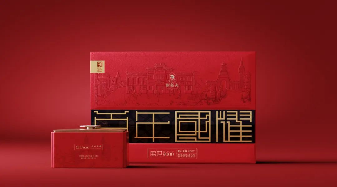 在包裝上,產(chǎn)品提取古代帝皇貴胄視覺符號,以正紅主色調(diào)、立體浮雕、雙層疊燙、古法手繪等工藝打造徽茶高端產(chǎn)品形象,重現(xiàn)黃山毛峰“名震歐洲四五載”之盛景,用視覺探索,從禮鑒徽州到民族品牌的文化自信。