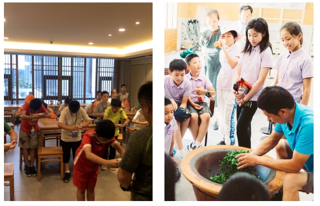 目前,基地內(nèi)設(shè)有室內(nèi)的茶藝師、博物館講解員、評茶員等茶文化體驗(yàn)課,以及室外的茶園管護(hù)、茶樹育種、茶葉采摘和非遺手工制茶等實(shí)踐課程,以茶葉科普活動和茶文化為基礎(chǔ),建立了開放式、多元化的研學(xué)旅行體系。通過結(jié)合徽州茶文化和自然、紅色資源等資源優(yōu)勢,開展“旅游+教育”新模式,真正做到讓學(xué)生“在游中有所學(xué)、在行中有所思”。