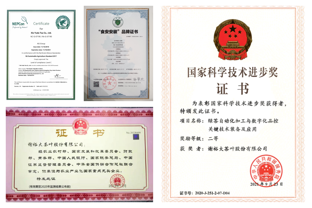高質(zhì)量產(chǎn)品和創(chuàng)新技術(shù)的不斷升級(jí),不僅實(shí)現(xiàn)了產(chǎn)品和服務(wù)的持續(xù)改進(jìn),也有效提升了謝裕大這一百年中華老字號(hào)的品牌形象,獲得了包括“國家級(jí)綠色工廠”、“農(nóng)業(yè)產(chǎn)業(yè)化國家重點(diǎn)龍頭企業(yè)”、“國際雨林認(rèn)證”、“首批食安安徽品牌認(rèn)證企業(yè)”等在內(nèi)的多項(xiàng)行業(yè)獎(jiǎng)項(xiàng)和社會(huì)認(rèn)可。