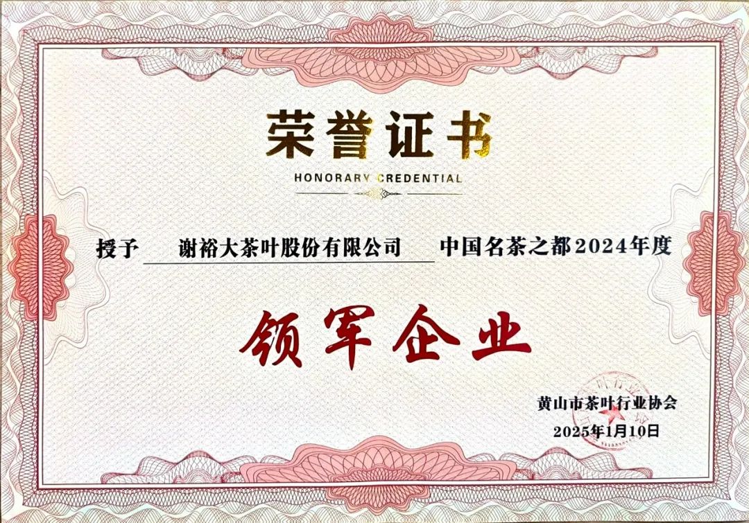 為表彰先進,會上頒發(fā)了中國名茶之都發(fā)展新質(zhì)生產(chǎn)力2024年度先進個人、2024年度新銳企業(yè)、2024年度出口強企、2024年度領(lǐng)軍企業(yè)等獎項,鼓勵各會員單位再接再厲,更上一層樓。其中,謝裕大被評為“中國名茶之都2024年度領(lǐng)軍企業(yè)”,這不僅是對謝裕大過去一年所作成績的榮譽鼓勵,更代表著行業(yè)對謝裕大多年來在茶產(chǎn)業(yè)中所做貢獻的高度認可。